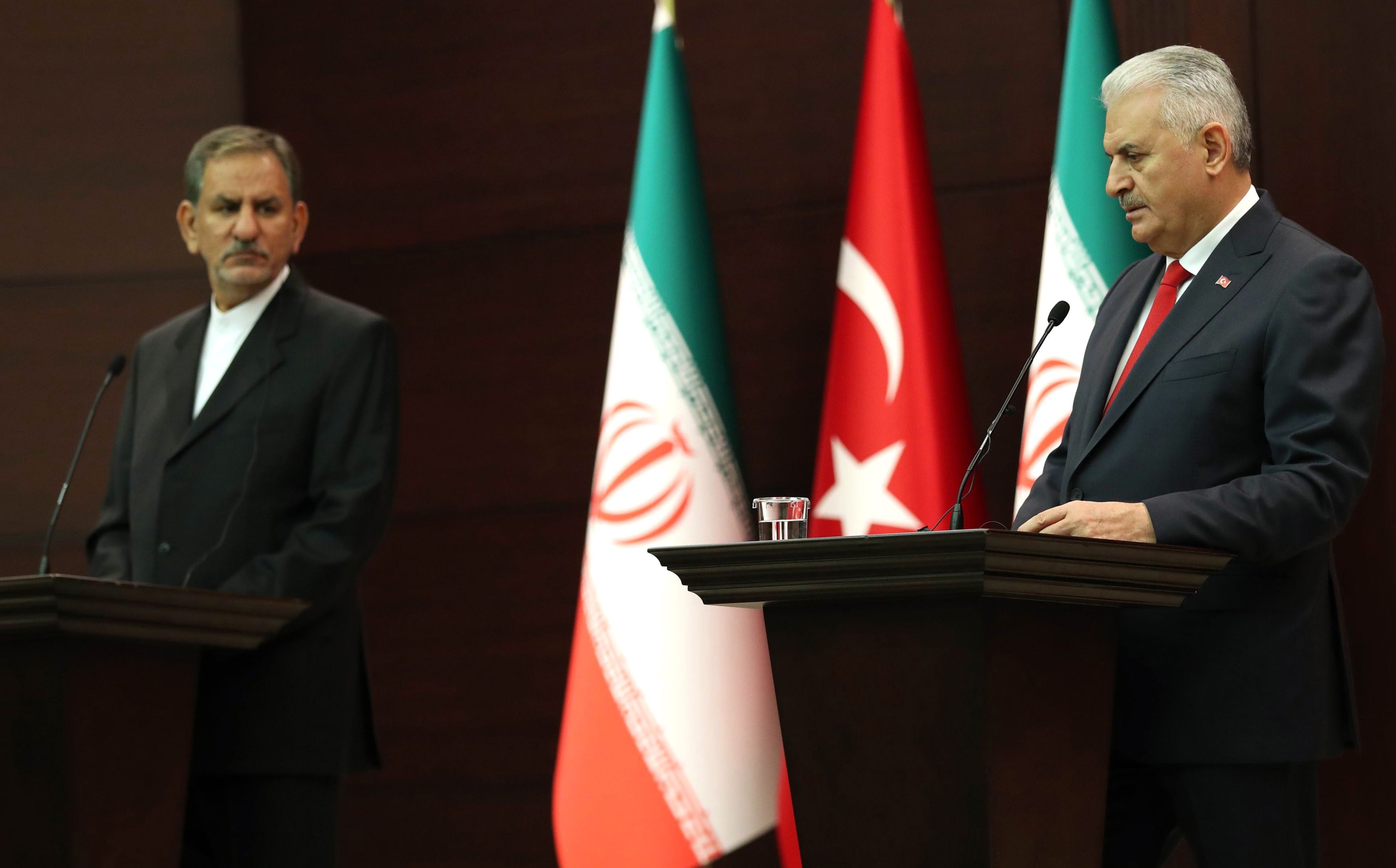 Iranian First Vice President Eshaq Jahangiri and Turkish Prime Minister Binali Yildirim spoke at a press conference after a meeting in Ankara on Thursday.