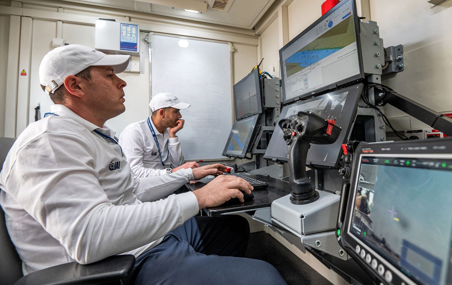 Controllers man a terminal at the command station of the Israel Aerospace Industries (IAI) in an unmanned maritime demonstration during the Naval Defence and Maritime Security Exhibition (NAVDEX), part of the wider International Defence Exhibtion (IDEX) at the Abu Dhabi International Exhibition Centre on February 20, 2023. Photo: Ryan Lim/AFP