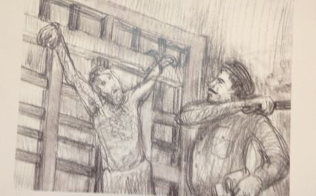The moving illustrations showed the grim suffering of Kurdish refugees. One showed how a man was humiliated in front of his two daughters by forcing him between the two girls. His wife died of grief and the girls were never seen again.