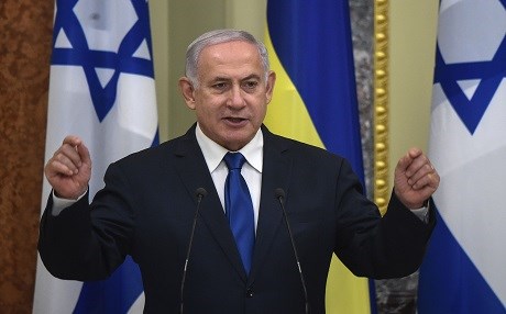Israeli Prime Minister Benjamin Netanyahu speaking in Ukraine on August 19, 2019. Photo: AFP/Sergei Supinsky
