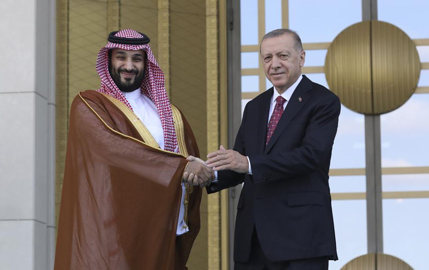 The crown prince’s convoy arrived at the presidential palace complex escorted by Turkish mounted honor guards. Erdogan greeted the prince at an entrance to the palace after which the two kissed each other on both cheeks.