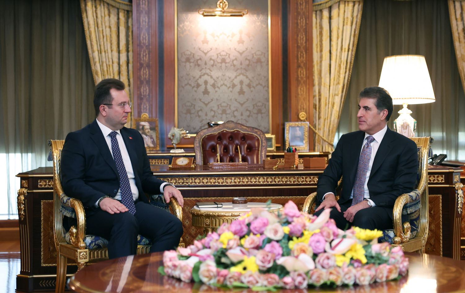Kurdistan Region President Nechirvan Barzani (right) meets Turkish Consul General to Erbil Erman Topcu (left). Photo: Kurdistan Region Presidency