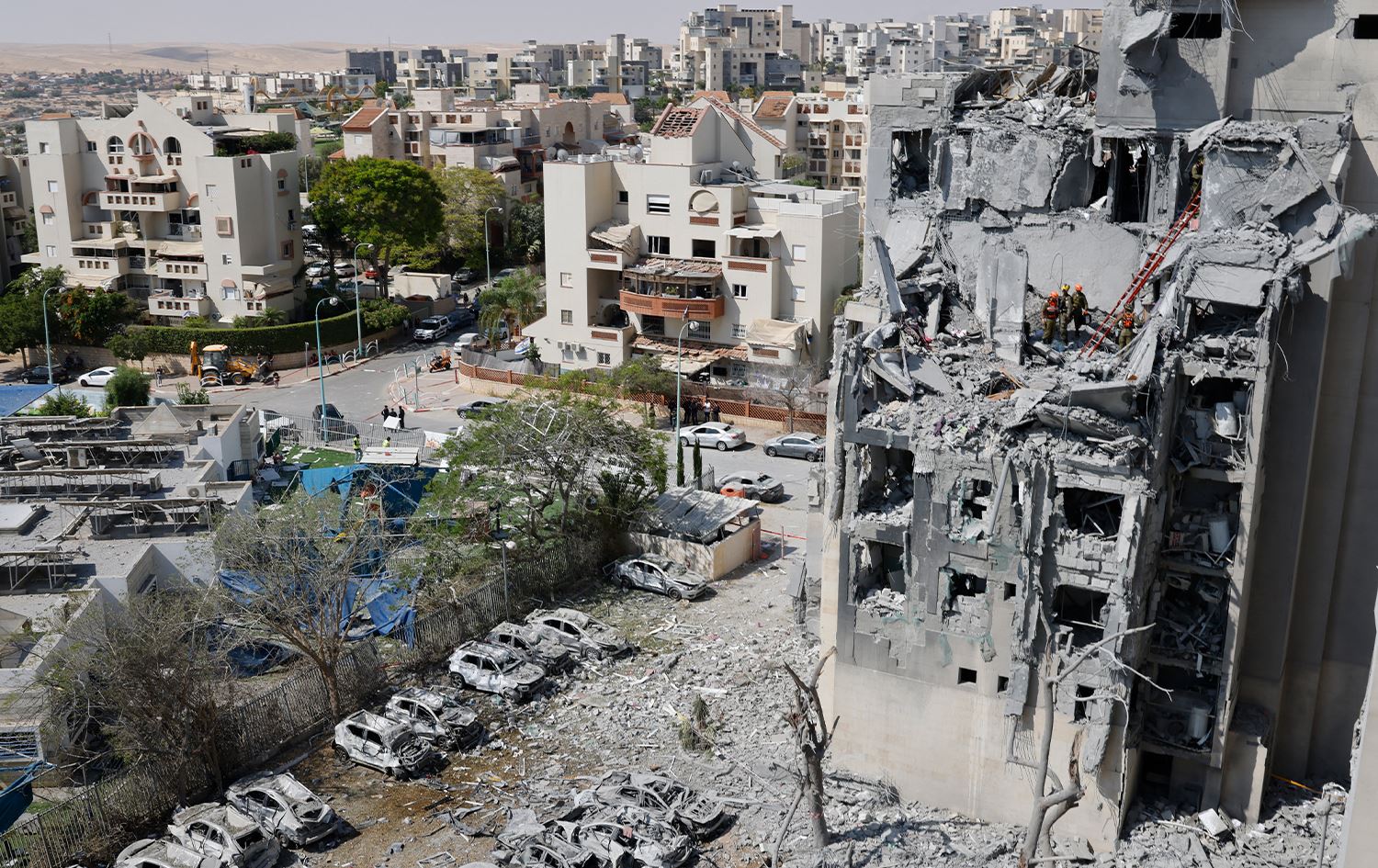Emergency workers check the damage caused to a building from an Iranian missile strike in Beersheba in southern Israel on June 24, 2025. Photo: AFP