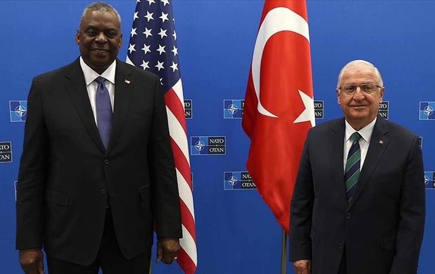 Turkish National Defense Minister Yasar Guler (right) and US Defense Secretary Lloyd Austin. File photo: AA