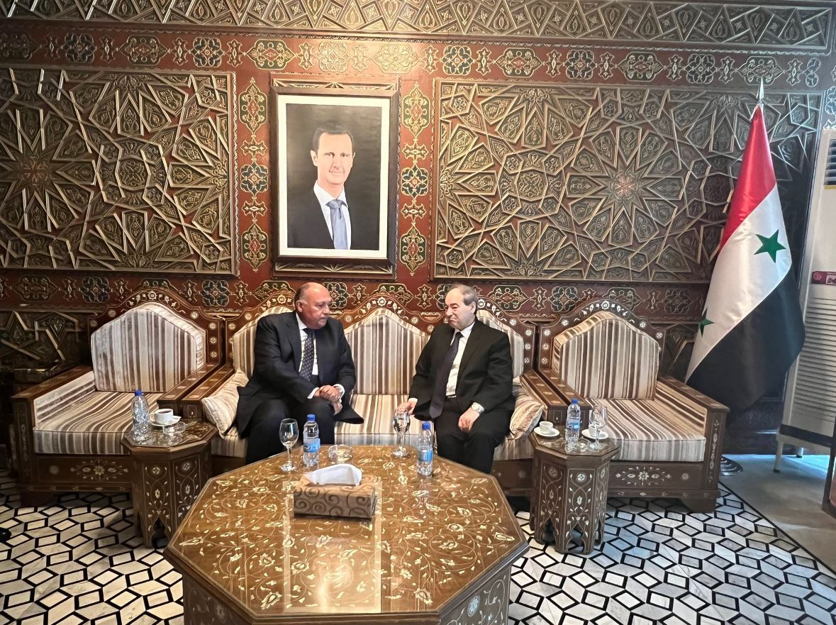 Syrian Foreign Minister Faisal Mekdad received Egyptian Foreign Minister Sameh Shoukry in Damascus for talks on February 27, 2023. Photo: Egyptian foreign ministry