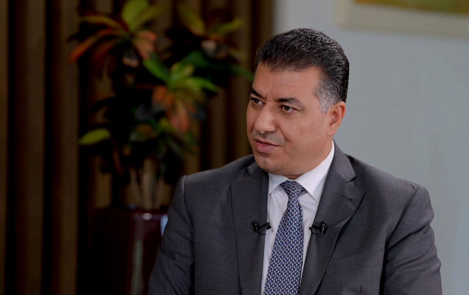 Jordanian Agriculture Minister Khaled al-Henefat speaking to Rudaw during a televised interview on August 26, 2024. Photo: Rudaw