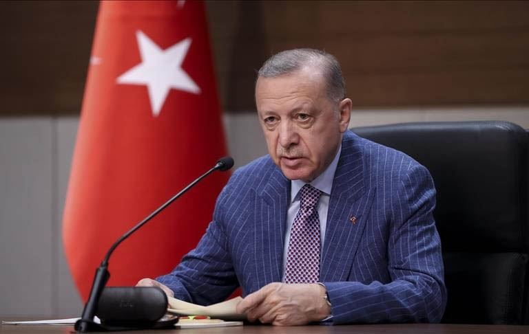 Turkish President Recep Tayyip Erdogan speaks to reporters in Istanbul ahead of his trip to Riyadh on April 28, 2022. Photo: AA