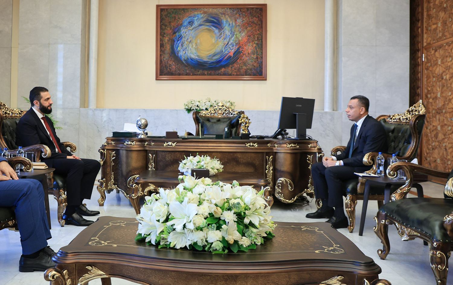 Syrian interim President Ahmed al-Sharaa (left) meeting with Hamid al-Shatri, head of the Iraqi National Intelligence Service (INIS), in Damascus on August 28, 2025. Photo: Syrian presidency
