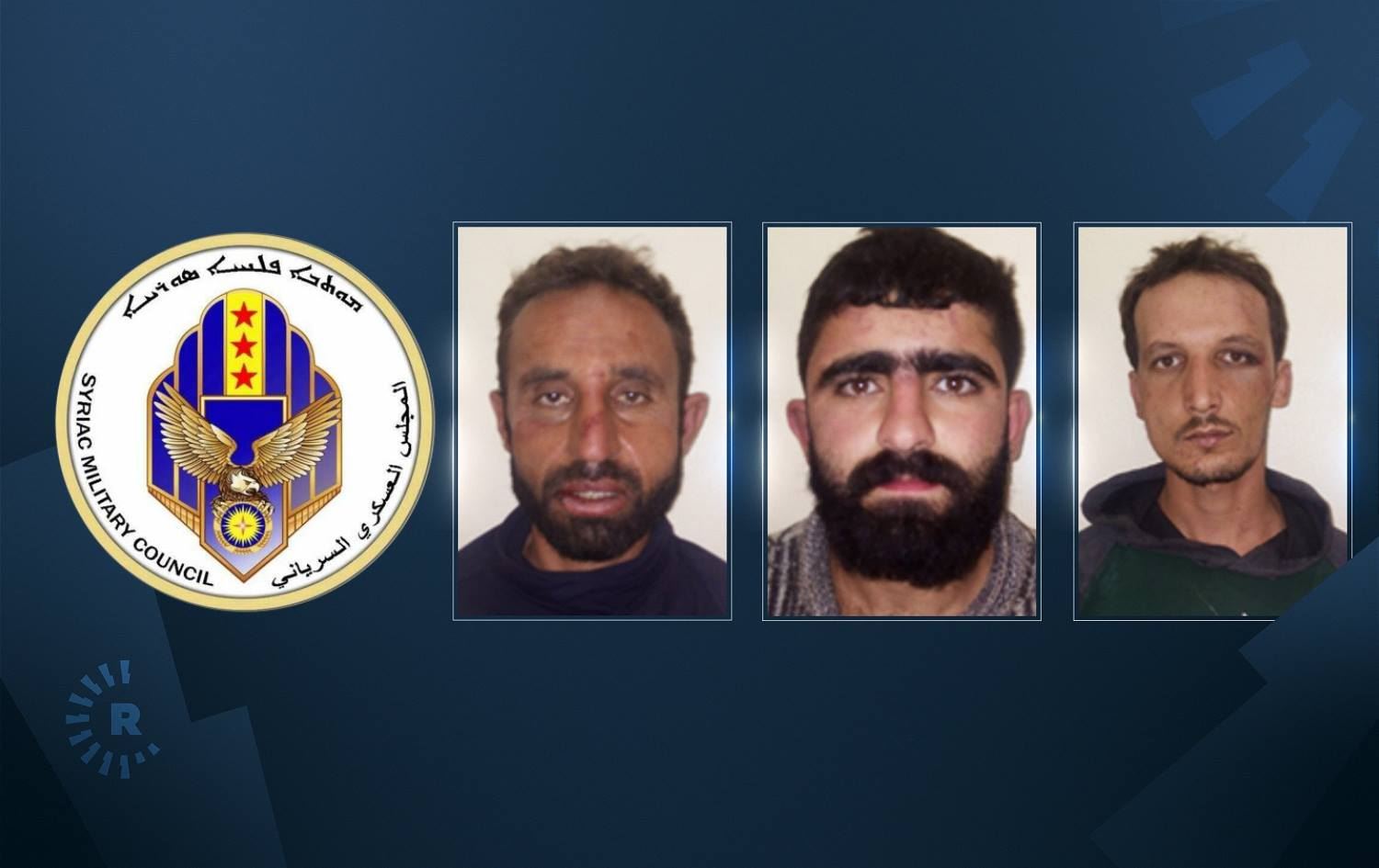 From left: logo of Syriac Military Council, and the three fighters: Muhsin Gharbi Ahle, Jamil Gorges and Amad Jassim Suud. Photos: submitted