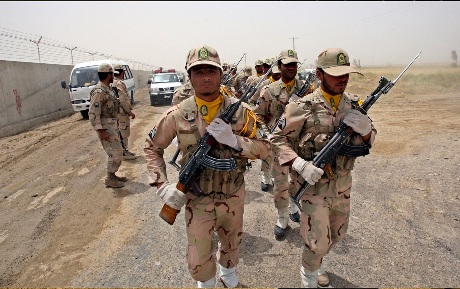 A group of Iranian border guards march at the eastern border of Iran shared with Pakistan and Afghanistan near Zabol, Sistan and Baluchestan Province, Iran, on July 19, 2011. Photo: AP
