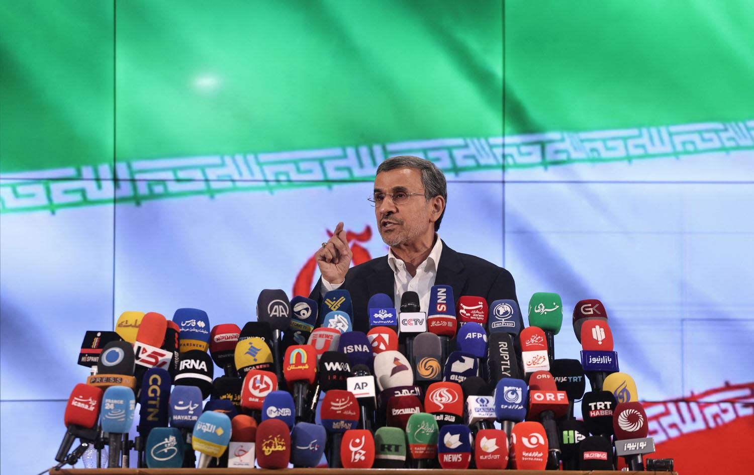 Former Iranian president Mahmoud Ahmadinejad addresses the media after registering his candidacy for Iran's upcoming presidential election in Tehran on June 2, 2024. Photo: ATTA KENARE / AFP