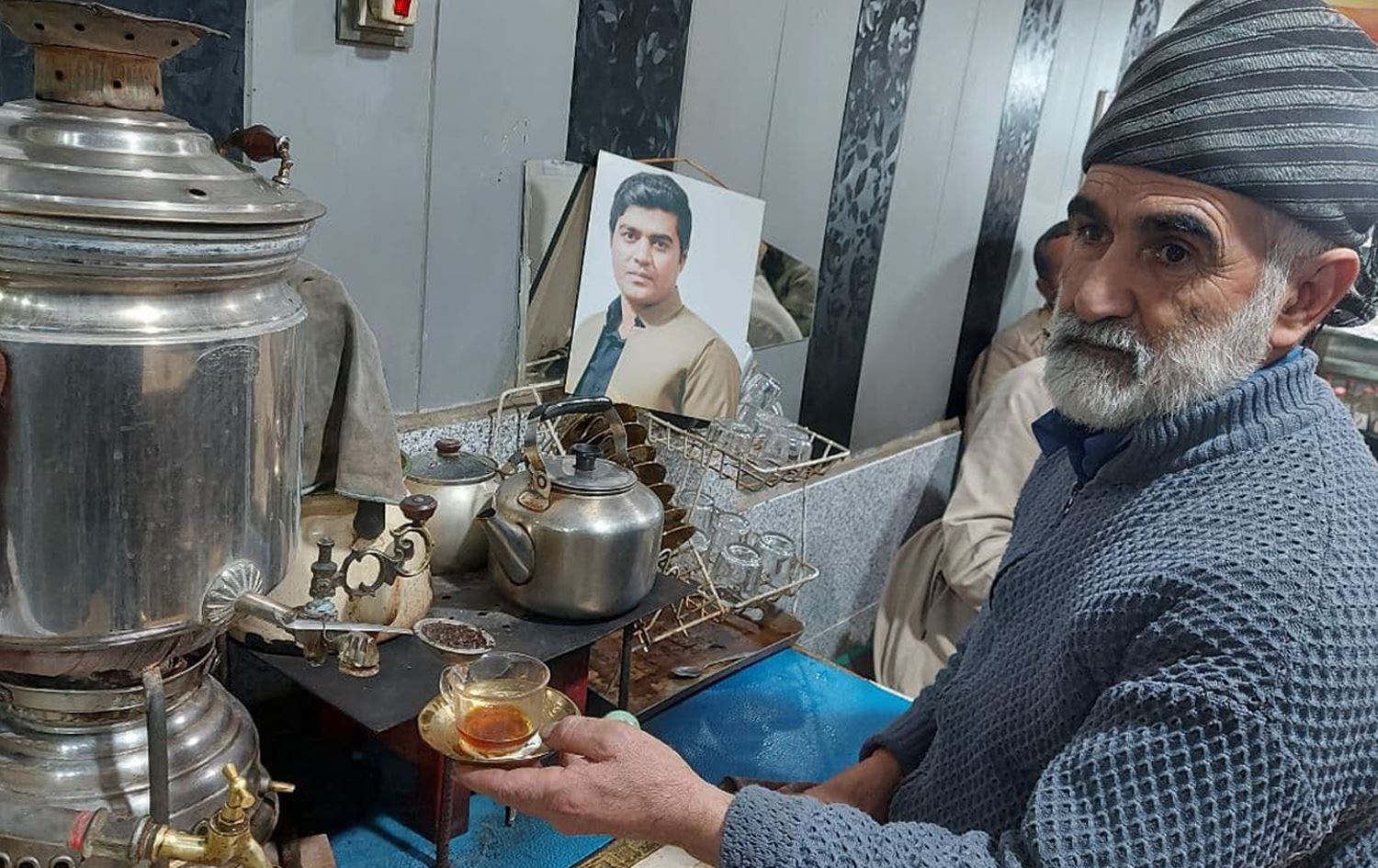MARIWAN, Iran - As he pours his customers another cup of tea, Khalid Haqmuradi takes a look at his late son’s picture, and ponders upon the heavy debt placed on his shoulders following the kolbar’s passing. A debt that he cannot repay even if he were to sell his most valuable property, his house.