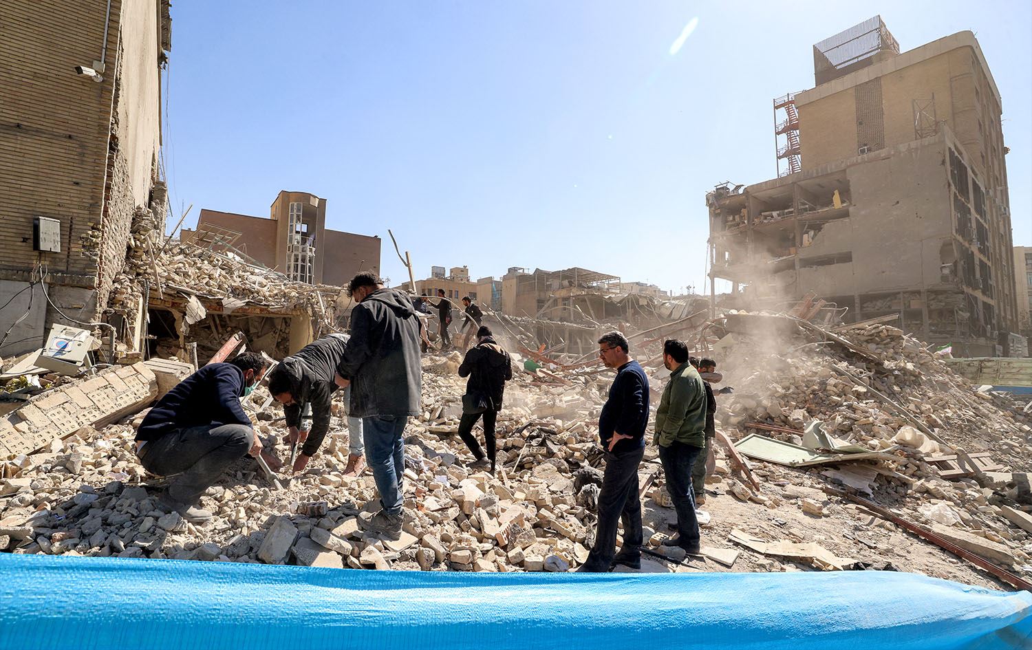 People inspect the rubble of a collapsed building near Ferdowsi square in Tehran on March 3, 2026. Photo: Atta Kenare / AFP