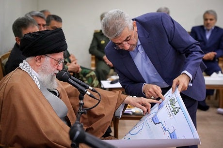 Iranian Energy Minister Reza Ardakanian shows Ayatollah Ali Khamenei the government's response to flooding, April 3, 2019. Photo: Office of Ayatollah Ali Khamenei