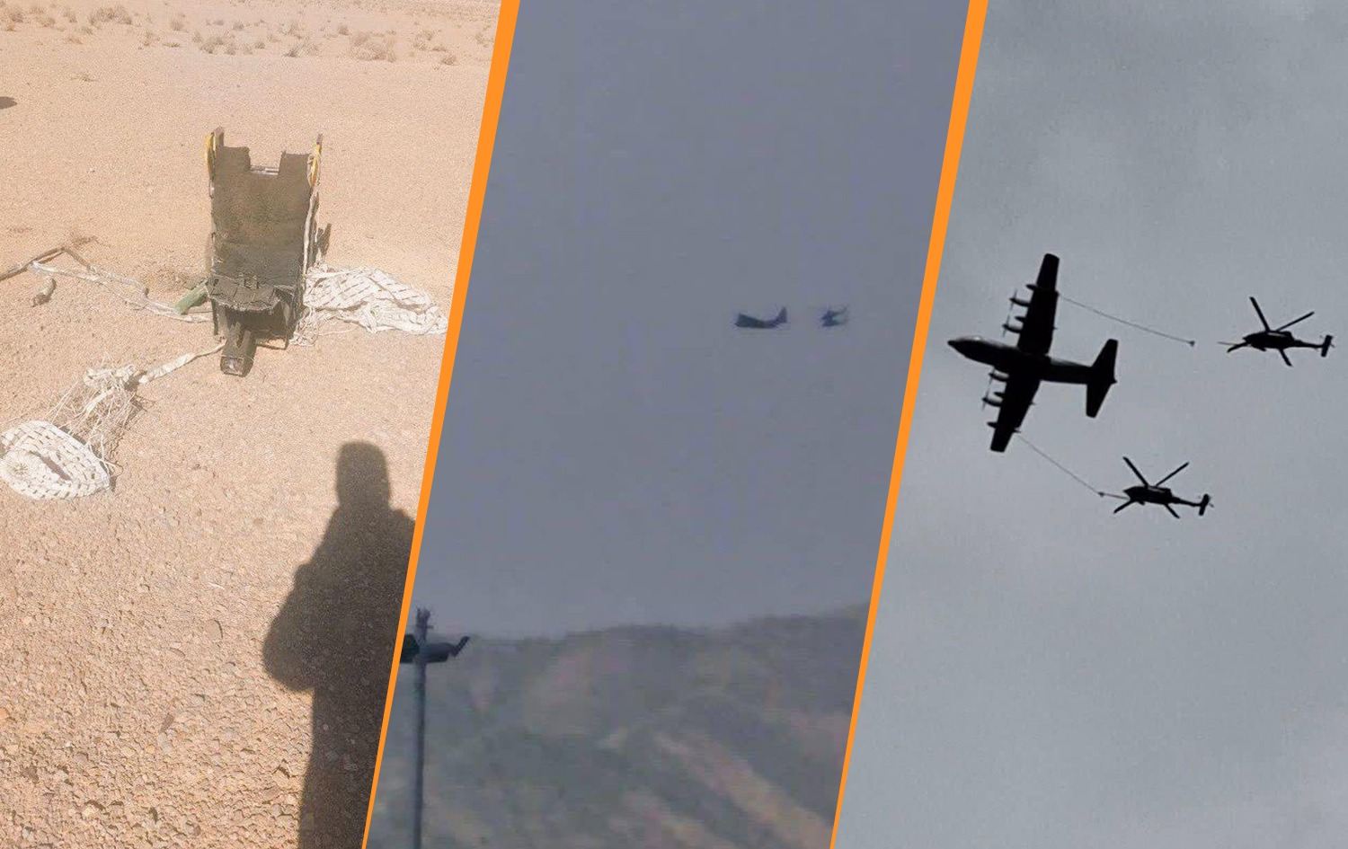 Image of the alleged ejection seat from the reportedly downed aircraft (left) and of the purported American plane carrying out a search-and-rescue operation in southern Iran circulated by IRGC media on April 3, 2026. Graphic: Rudaw