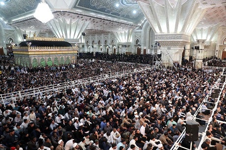 Iranians gathering to listen to the Iranian supreme leader's speech on the occasion of the 30th death anniversary of the founder of the Islamic republic Ayatollah Ruhollah Khomeini, at his shrine in Tehran on June 4, 2019. Photo: AFP/Khamenei.ir handout