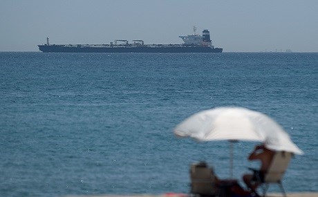 The supertanker Grace 1 suspected of carrying crude oil to Syria in violation of EU sanctions after it was detained off the coast of Gibraltar, July 4, 2019. Photo: Jorge Guerrero / AFP