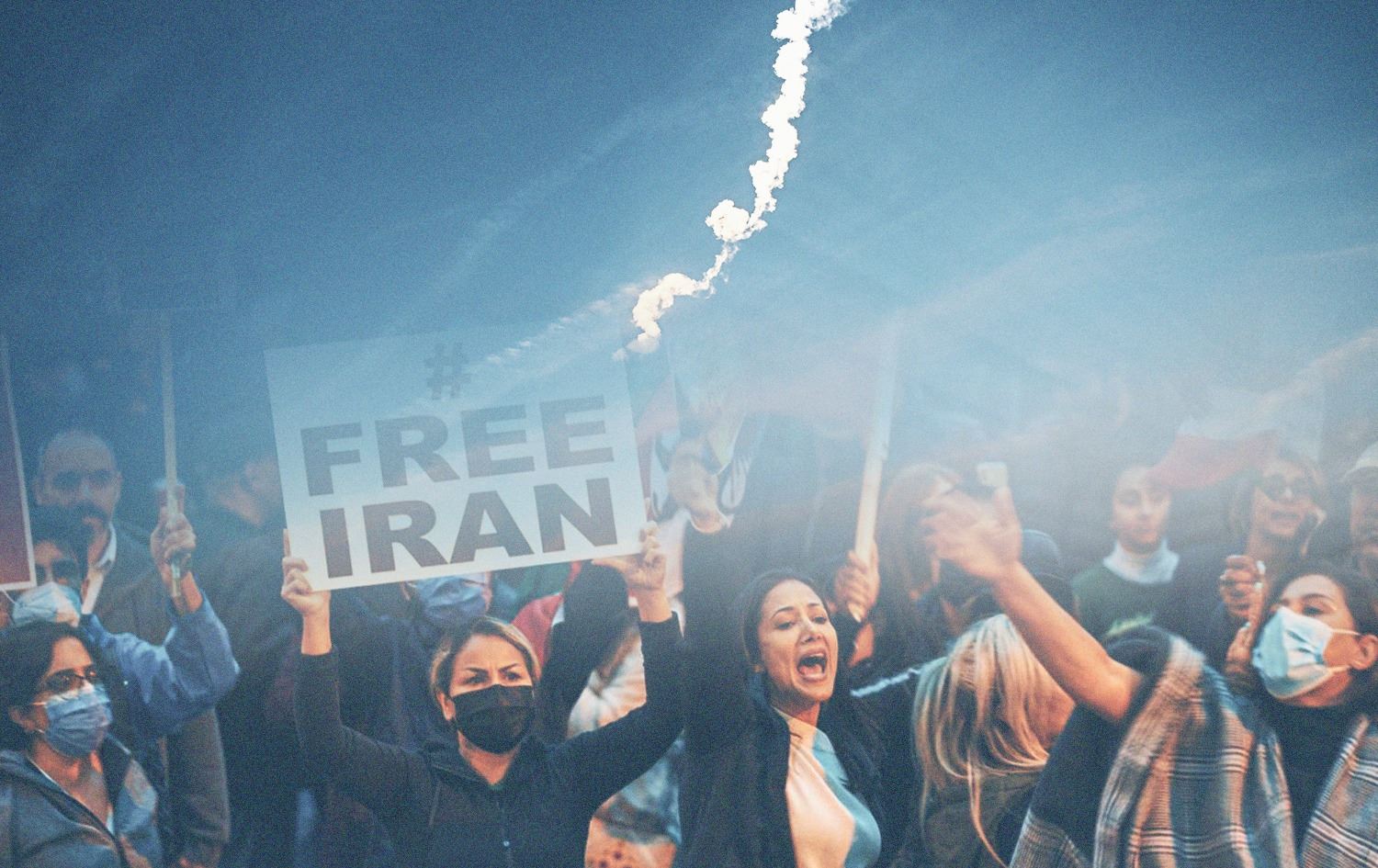 People watch the launch of a SpaceX Falcon 9 rocket carrying 21 second-generation Starlink satellites (above). Photo: Chandan Khanna/AFP; People demonstrate against the Iranian government during a protest at Mel Lastman Square in Toronto, Canada, 24 September 2022. Photo: APF; Graphic: Aland Qaradaxi/Rudaw