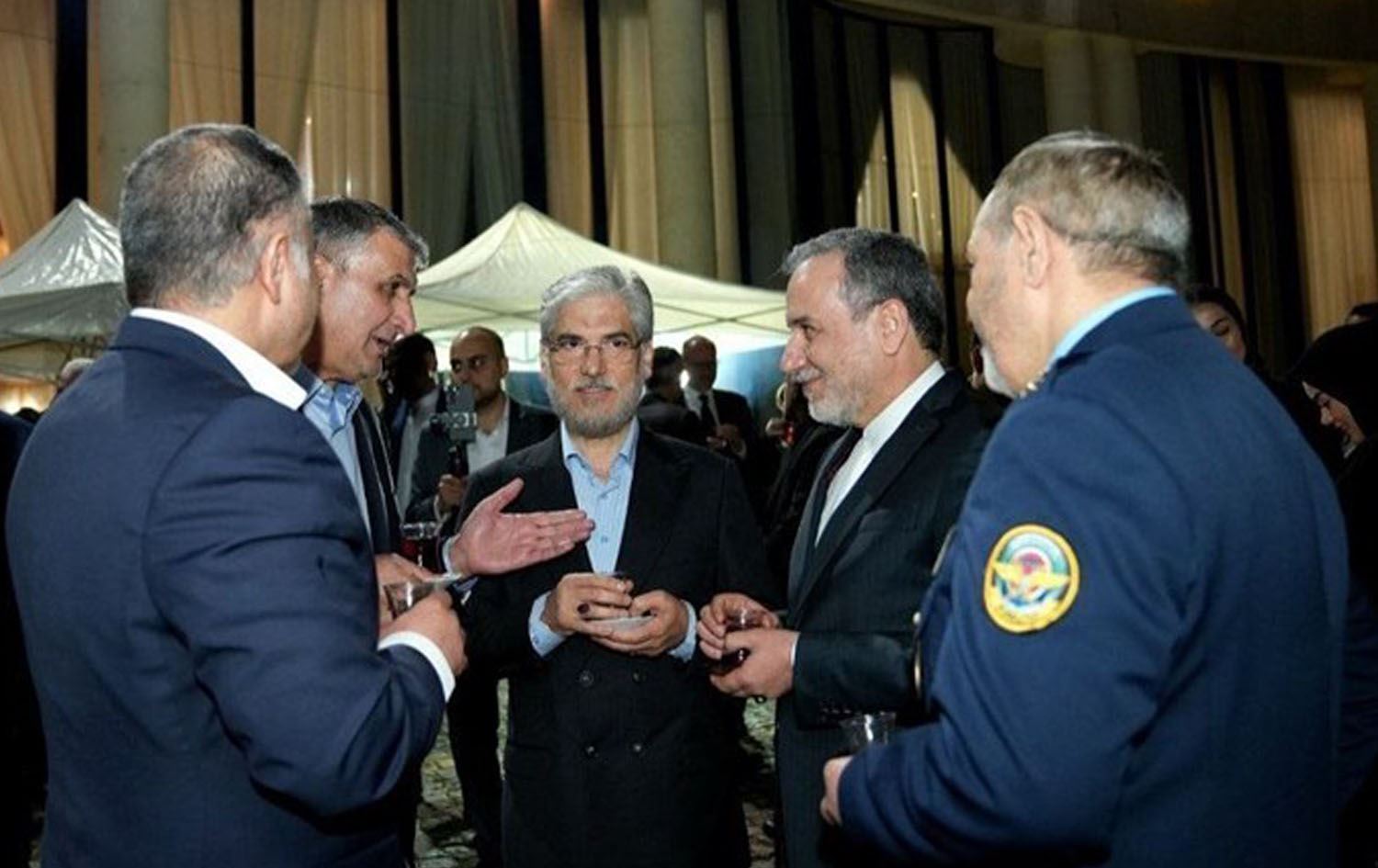 From left: Iranian Oil Minister Mohsen Paknejad, head of the Atomic Energy Organization of Iran Mohammad Eslami, Minister of Science, Research and Technology Hossein Simaee Sarraf, Foreign Minister Abbas Araghchi, and Defense Minister Aziz Nasirzadeh at an event in Tehran on April 5, 2025. Photo: Tasnim