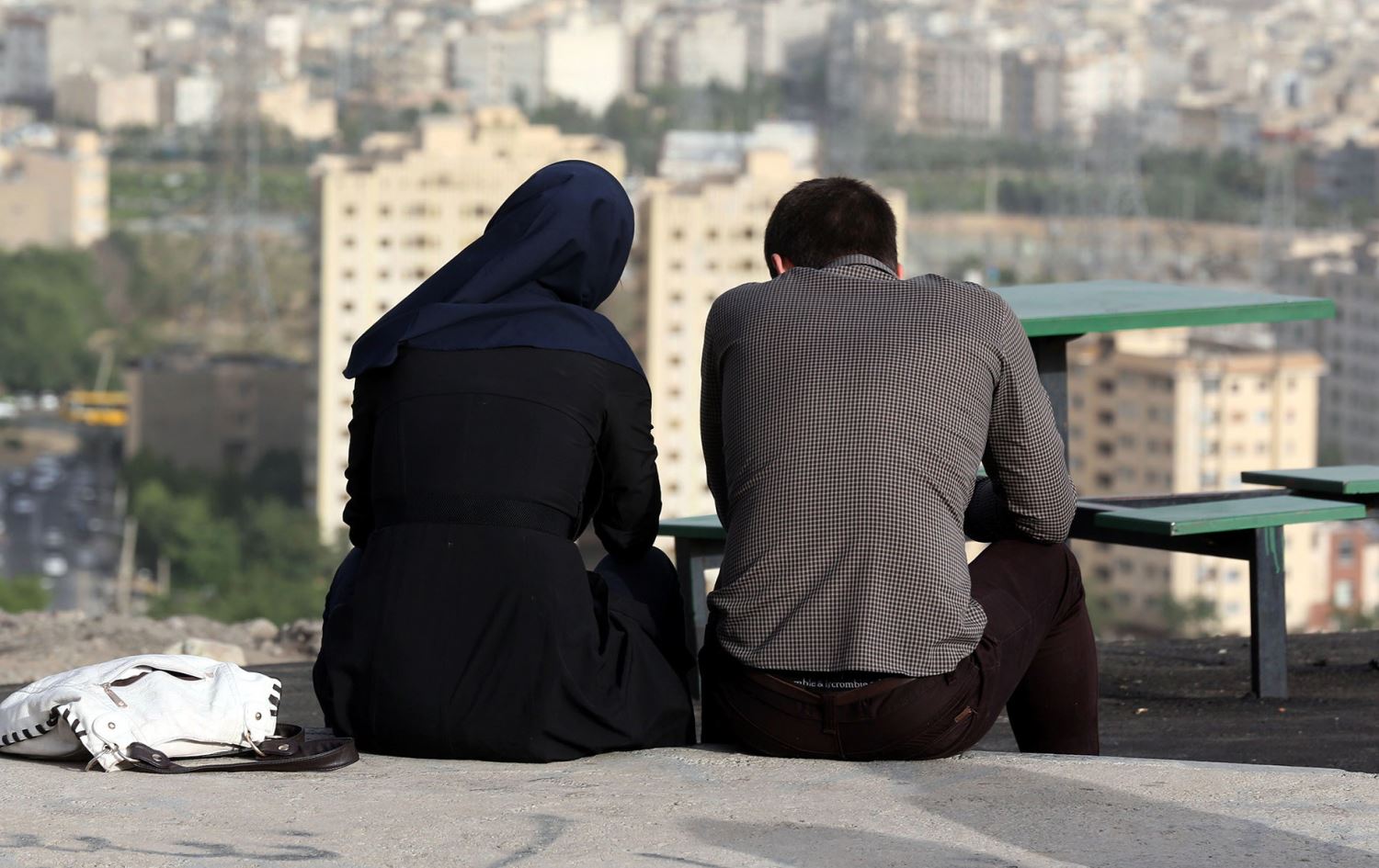 An Iranian couple sit together in the northwestern Shahran neighborhood overlooking Tehran on June 7, 2014. Photo: AFP / Atta Kenare