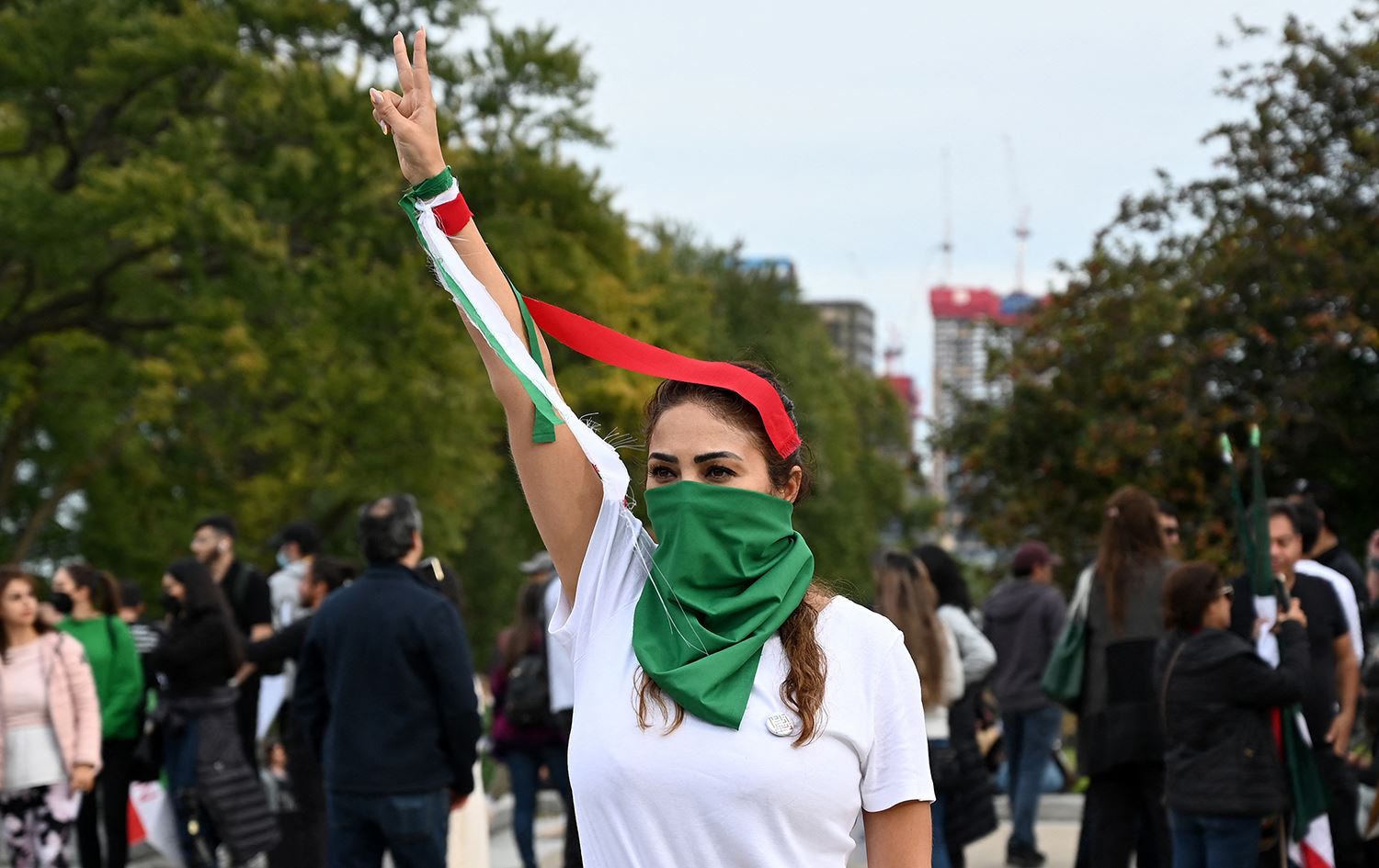 People demonstrate during a protest for Mahsa Amini who died in custody of Iran's morality police, in Montreal, Quebec, Canada, on October 1, 2022. Photo: Mathiew Leiser/AFP