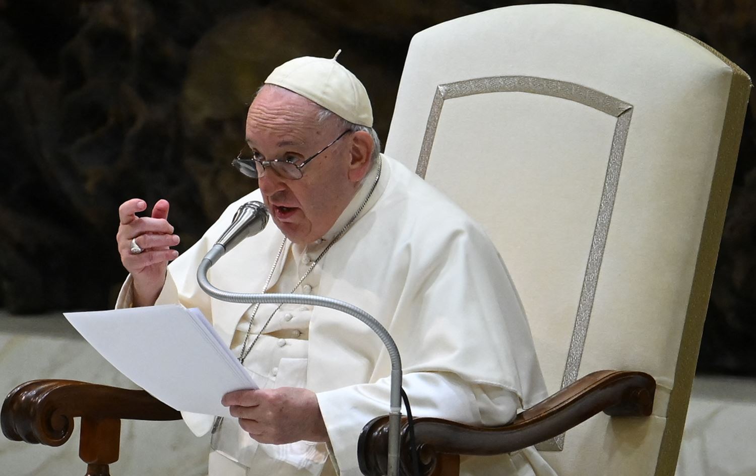 Pope Francis speaks during the weekly general audience on January 4, 2023 at Paul-VI hall in The Vatican. Photo: Filippo Monteforte/AFP