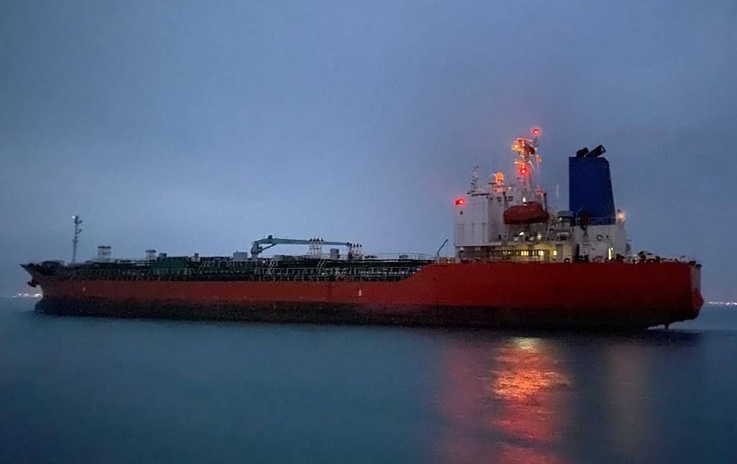 The South Korean-flagged tanker Hankuk Chemi departs the Iranian port of Rajai near Bandar Abbas on April 9, 2021. Photo: handout/South Korean Foreign Ministry/AFP