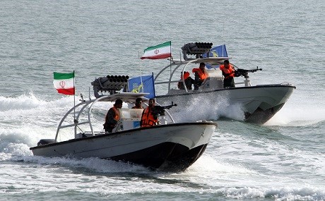 Iranian Revolutionary Guards drive speedboats at the port of Bandar Abbas, July 2, 2012. File photo: Atta Kenare / AFP