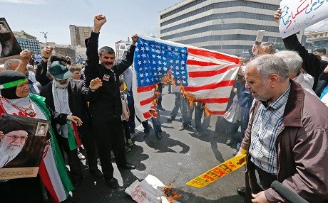 Chanting demonstrators, some draped in Iranian flags, waved placards reading “Down with USA!” and carried posters of the Supreme Leader. Others set American flags on fire, a favourite action at such rallies.