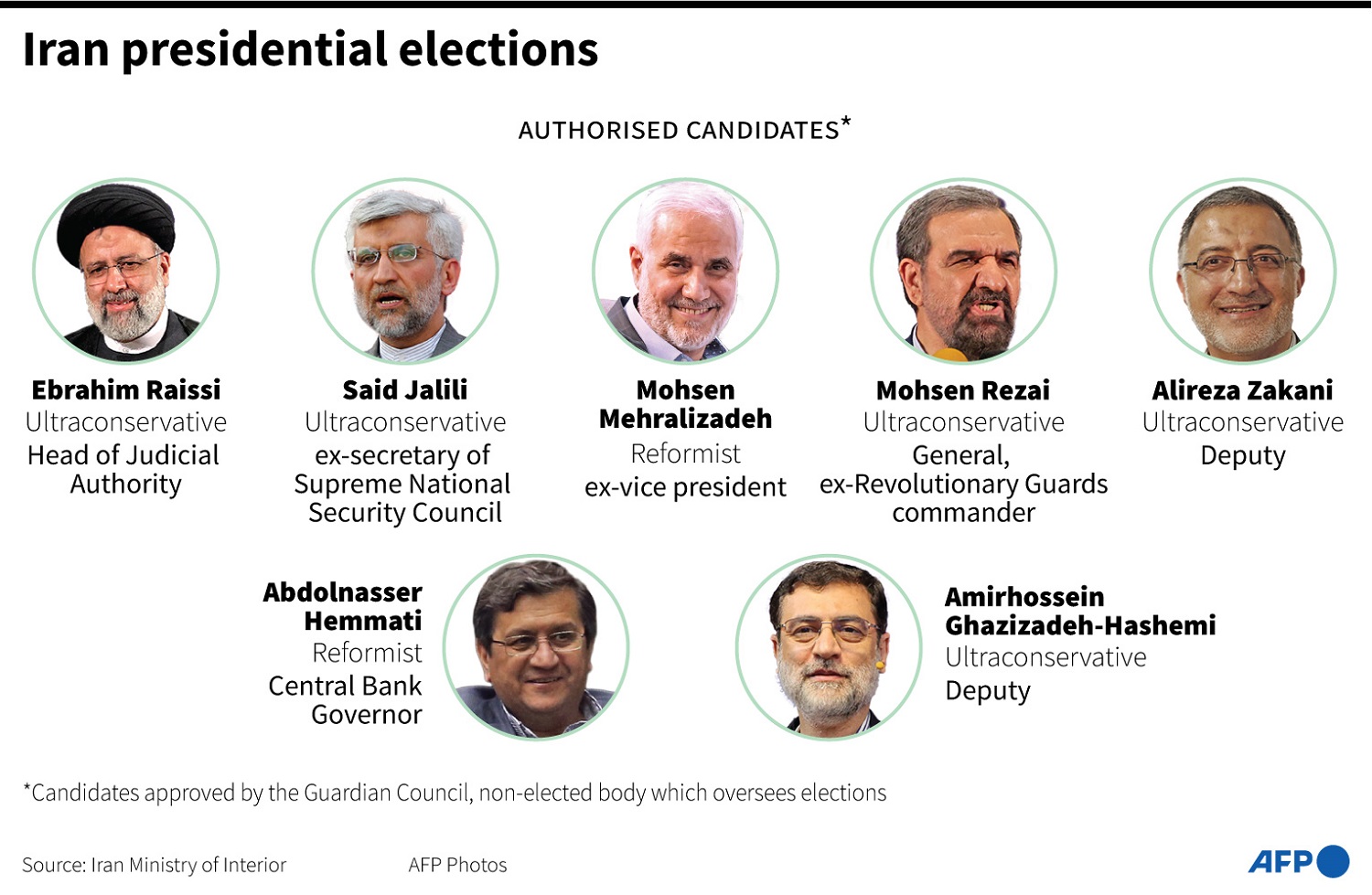 The seven candidates, all in favour of efforts to revive Tehran's 2015 nuclear accord with world powers, have been instructed by Iran's supreme leader Ayatollah Ali Khamenei to focus on the country's economic woes.