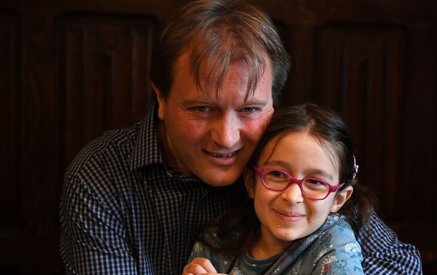 Richard Ratcliffe, husband of British-Iranian aid worker Nazanin Zaghari-Ratcliffe jailed in Tehran since 2016, holds his daughter Gabriella during a news conference in London, on October 11, 2019. Photo: Daniel Leal-Olivas/AFP