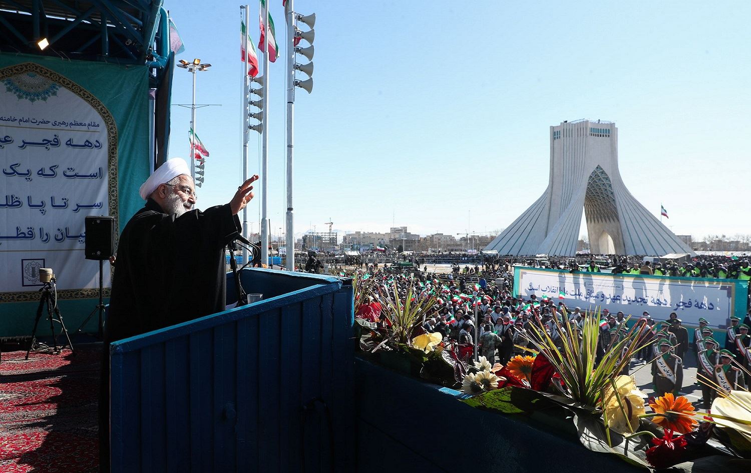 Hassan Rouhani delivering a speech commemorating 41 years since the Islamic Revolution in Tehran's Azadi Square, Iran, February 11, 2020. Photo: Iranian presidency / HO / AFP