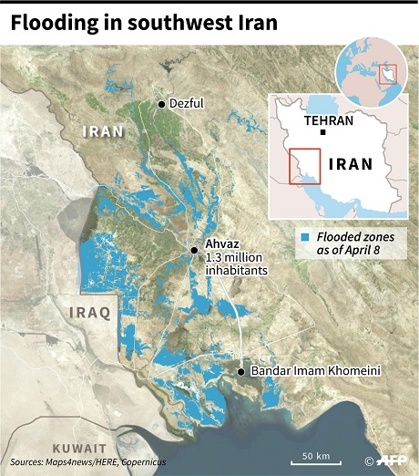 Khuzestan province has been struggling with major floods due to heavy rains as well as floodwater coming from the north.