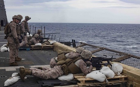 The USS Arlington, which transports marines, amphibious vehicles, conventional landing craft, and rotary aircraft, as well as a Patriot missile defense system will join the USS Abraham Lincoln aircraft carrier and an Air Force bomber task force, the Pentagon announced on May 10.