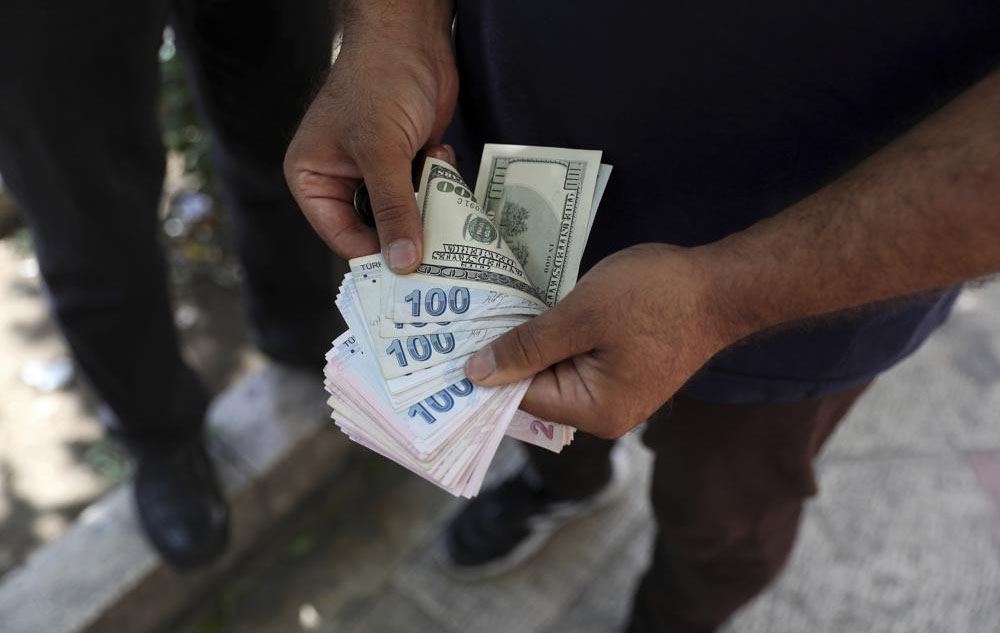 A street money exchanger counts foreign banknotes in Ferdowsi street, Tehran's go-to venue for foreign currency exchange, Iran, on June 12, 2022. Photo: Vahid Salemi/AP