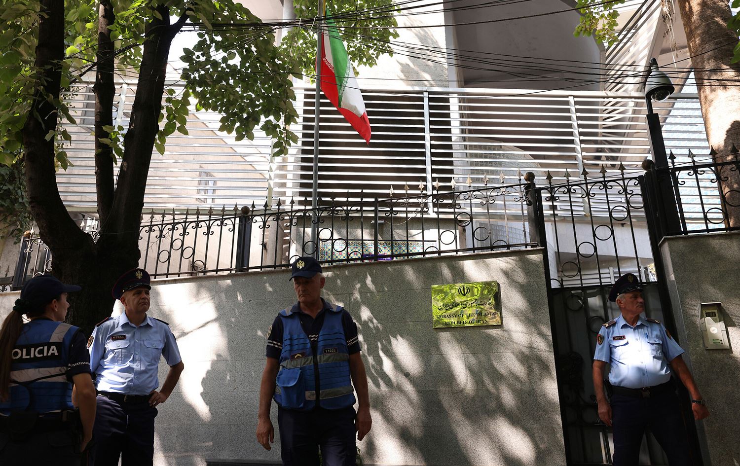 Police guard outside the Iranian embassy in Tirana, Albania on September 8, 2022. Photo: Franc Zhurda/AP