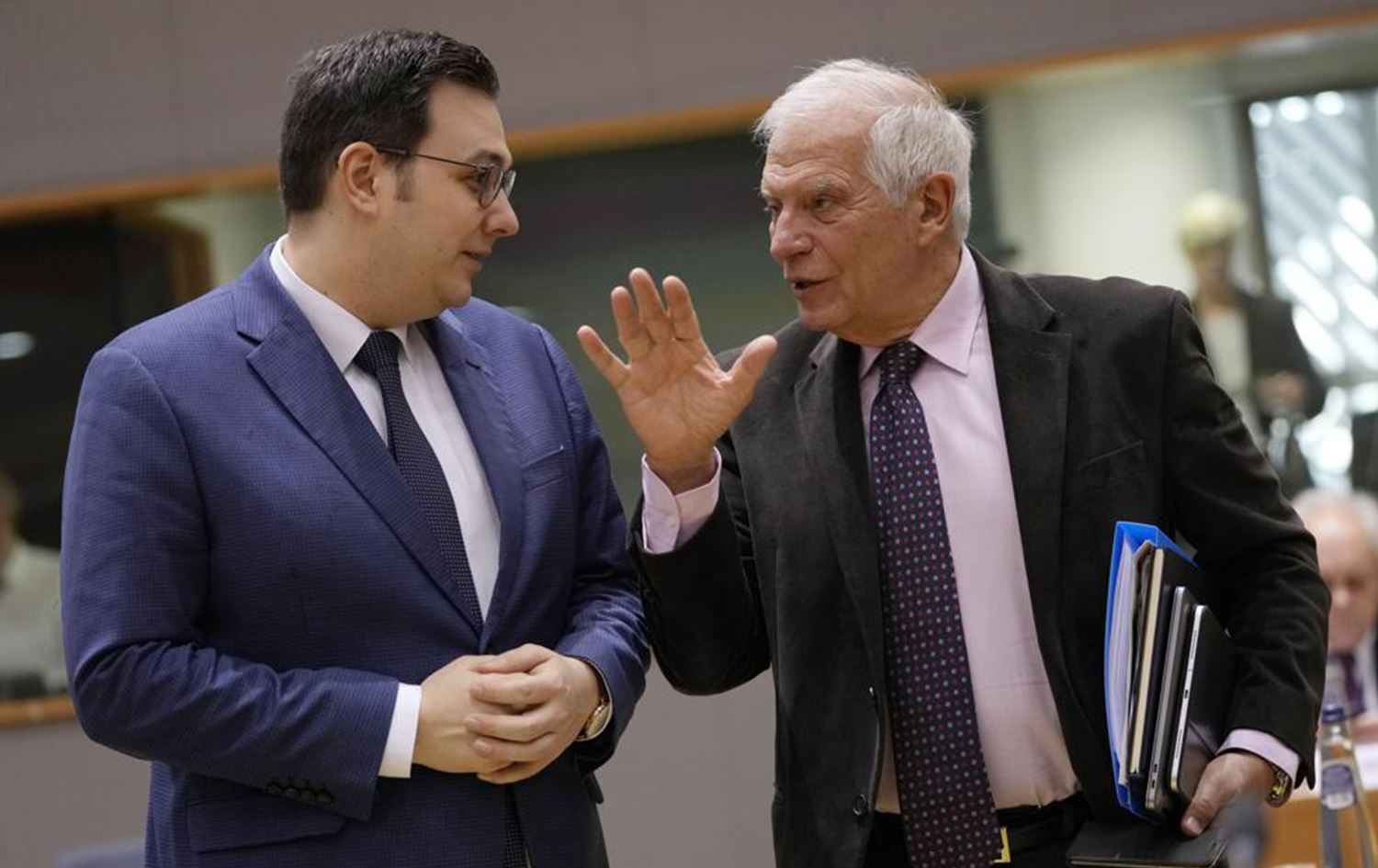 European Union foreign policy chief Josep Borrell, right, speaks with Czech Republic's Foreign Minister Jan Lipavsky a meeting of EU foreign ministers at the European Council building in Brussels, Monday, December 12, 2022. Photo: Virginia Mayo/AP