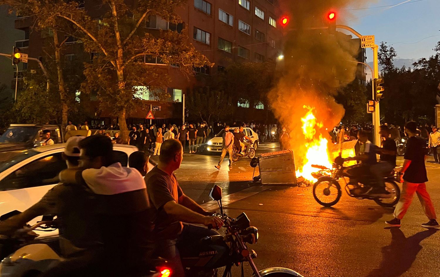 Demonstrators gather around a burning barricade during a protest for Zhina Amini in Tehran on September 19, 2022. Photo: AFP