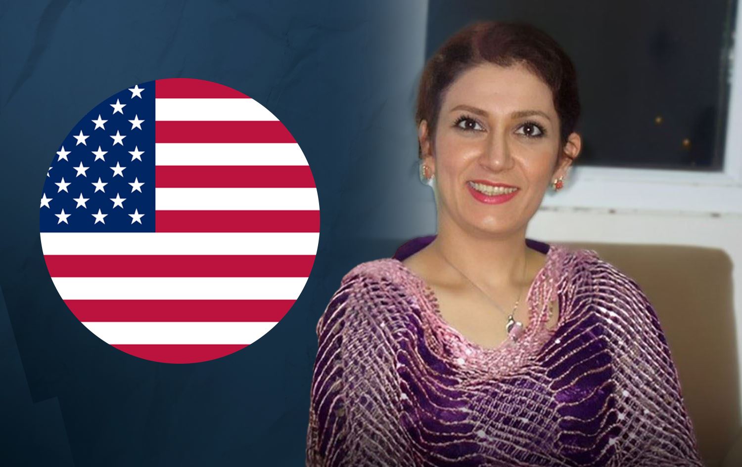Pakhshan Azizi, a Kurdish woman from Iran’s Kurdish city of Mahabad (right). Photo: Hengaw. US flag (left). Graphic: Rudaw
