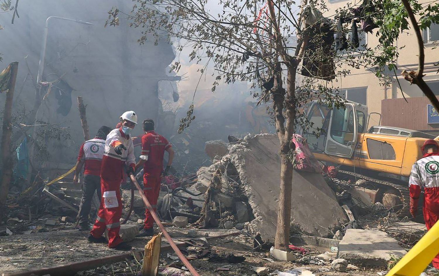 Iranian Red Crescent volunteers working in a Tehran neighborhood hit by a repeated Israeli strike on June 14, 2025. Photo: Iranian Red Crescent/AFP