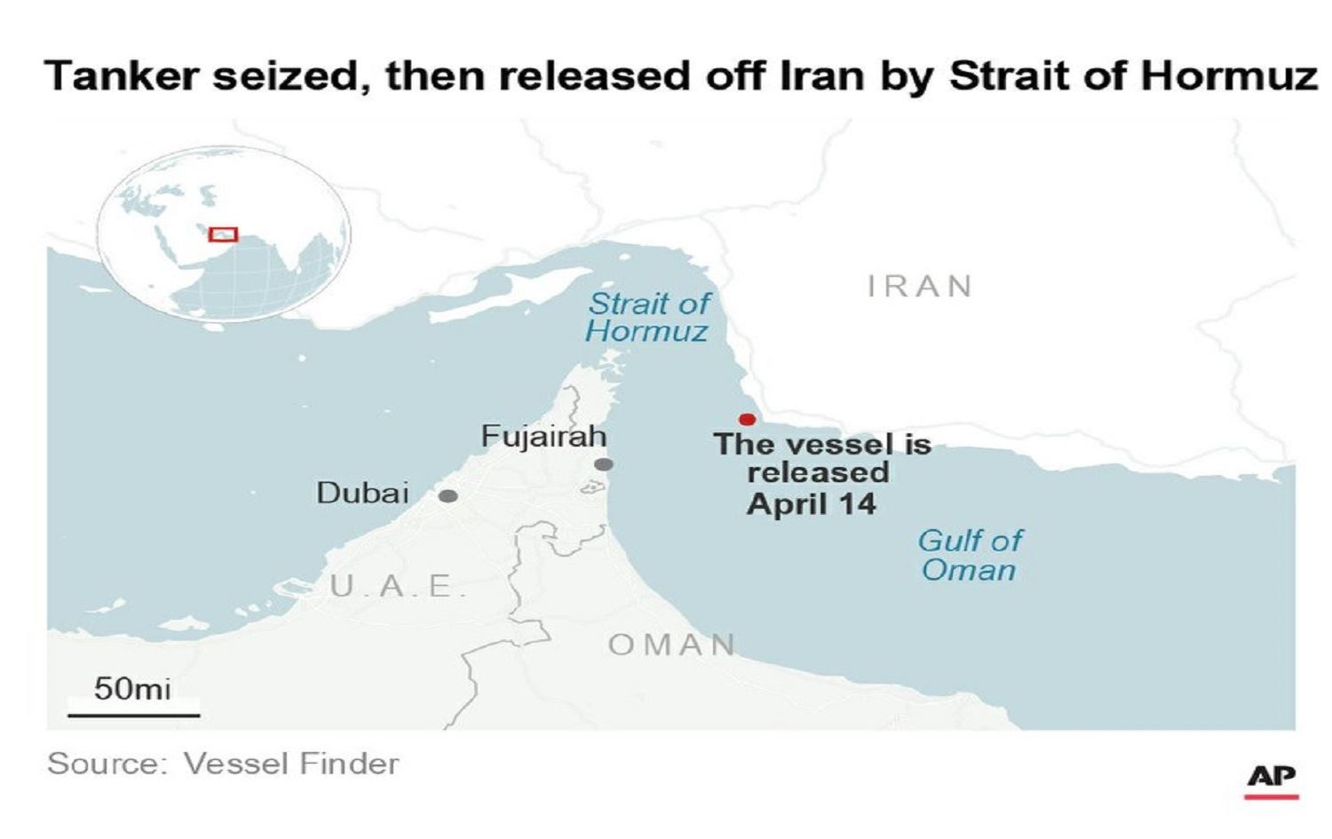 “The detention of a vessel in the Strait of Hormuz would fit comfortably within previous Iranian intent and capability ... and would provide an opportune ‘opening salvo’ in an Iranian attempt to release the pressures the country currently faces,” Dryad said Tuesday night.