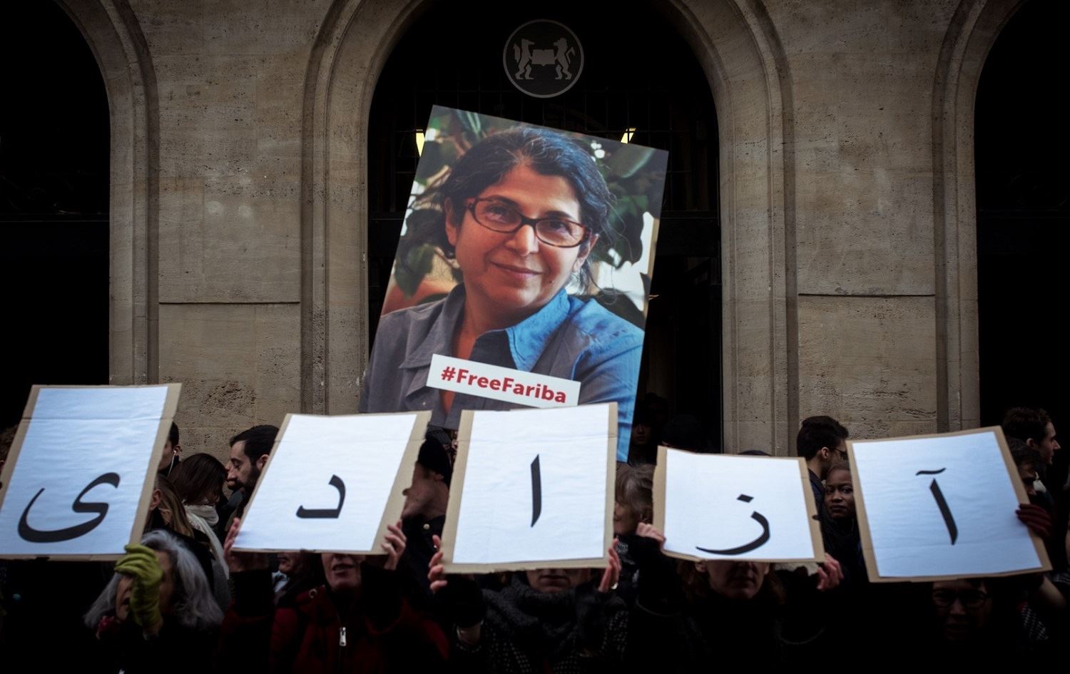 A protest in Paris calls for the release of French-Iranian academic Fariba Adelkhah, detained in Tehran by the Islamic Revolutionary Guard Corps (IRGC) in June 2019. File photo: Fariba Adelkhah and Roland Marchal Support Committee on Facebook