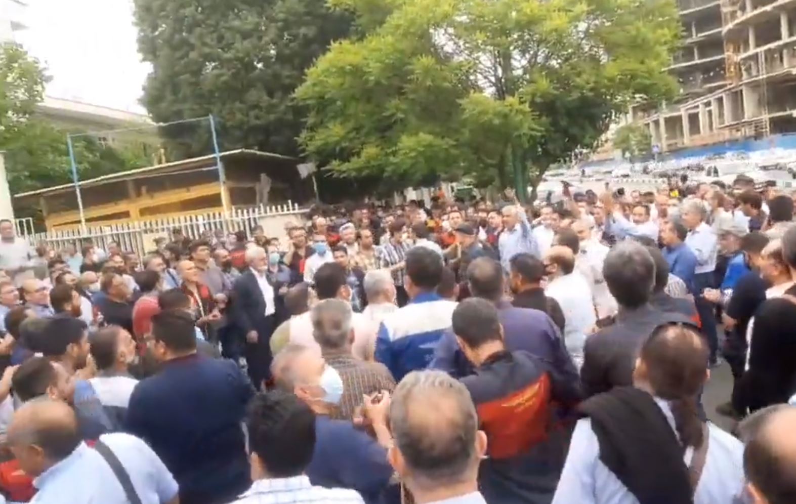 Bus drivers and workers of the Tehran Bus Company strike for higher wages in Iran's capital on May 16, 2022. Photo: Iran News Wire/Twitter