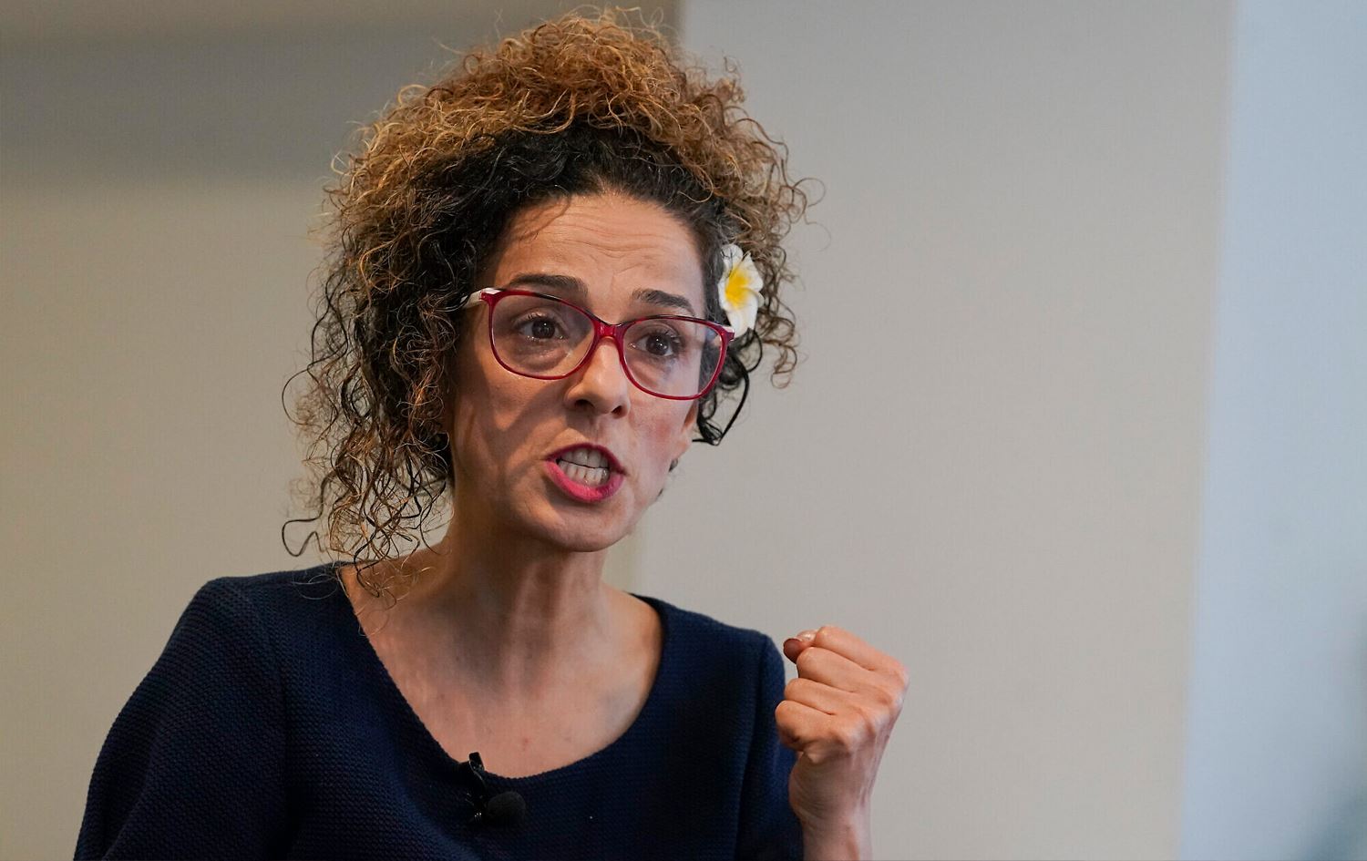 Iranian dissident Masih Alinejad gestures as she speaks during an interview with The Associated Press, September 23, 2022, in New York. Photo: AP/Mary Altaffer
