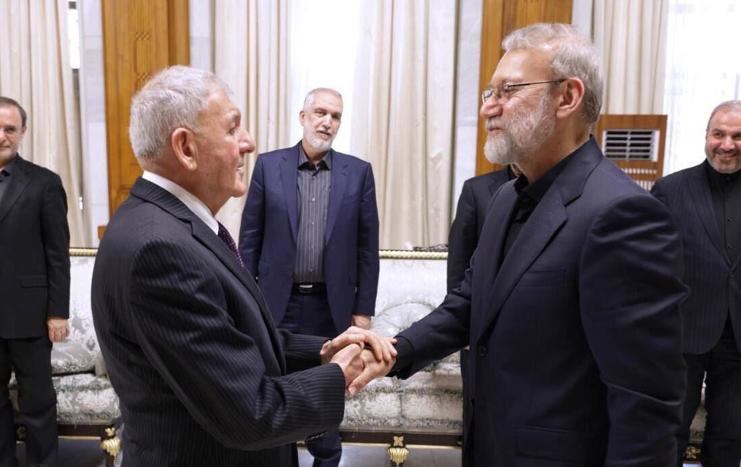 Iran’s Secretary of the Supreme National Security Council Ali Larijani (right) and Iraqi President Abdul Latif Rashid (left) meeting in Baghdad on August 11, 2025. Photo: IRIB