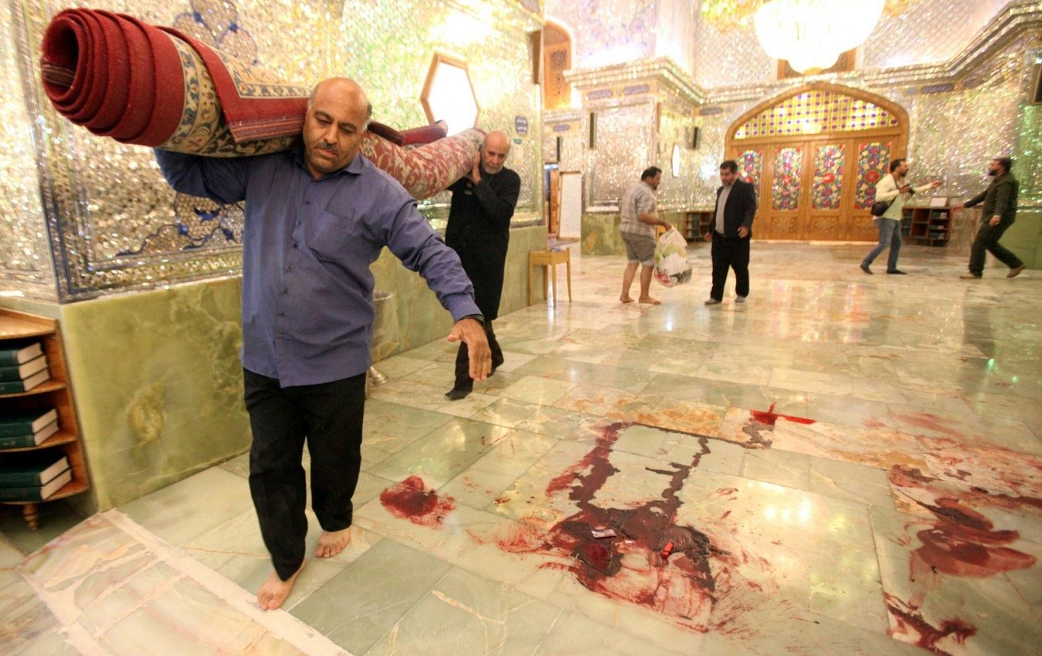 Workers clean after a deadly armed attack at the Shah Cheragh mausoleum in Shiraz, Iran on October 26, 2022. File photo: ISNA/AFP