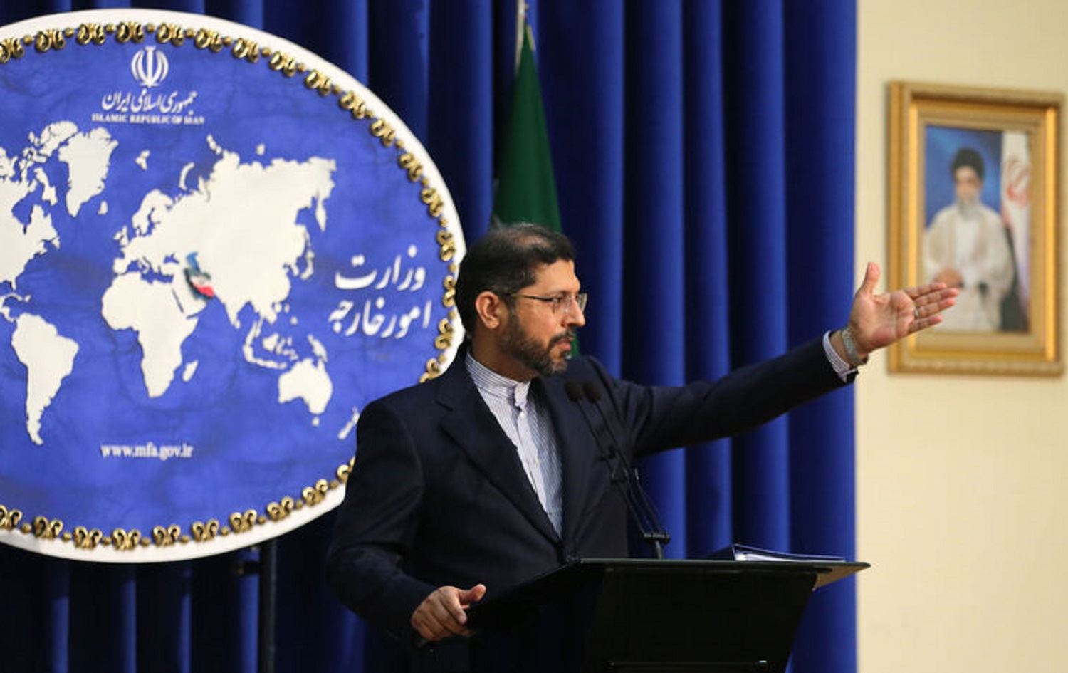 Iranian Foreign Ministry spokesman Saied Khatibzadeh gestures during a press conference in Tehran on Feb. 22, 2021. Photo: Atta Kenare/ AFP