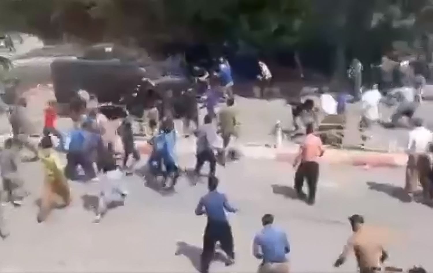 Screenshot from footage on social media depicting protesters under fire in the town of Divandarreh in Iran's Kurdistan province on September 19, 2022. Photo: Kurdistan Human Rights Network/Twitter
