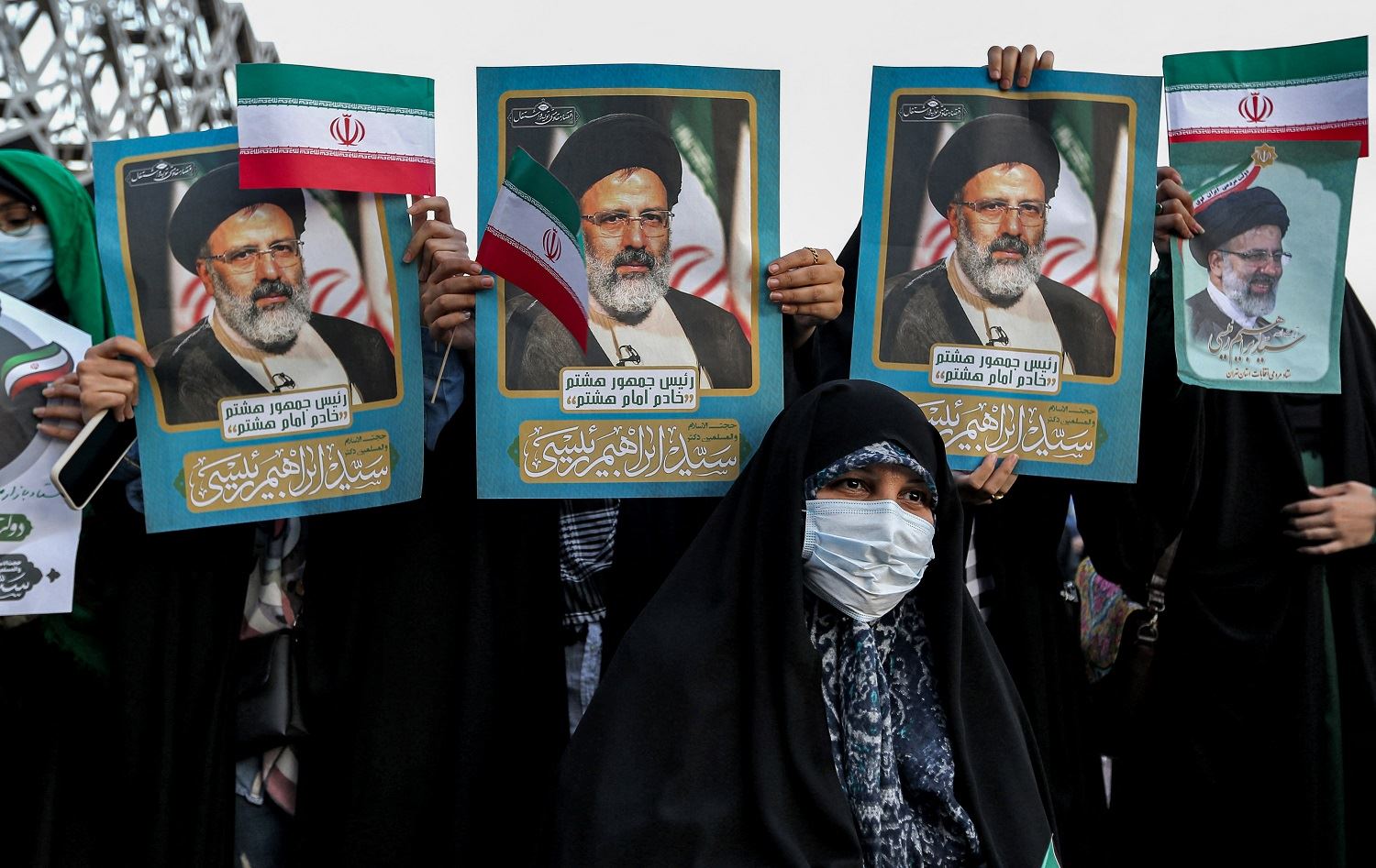Supporters of Iran's newly-elected president Ebrahim Raisi hold posters depicting him as they celebrate his victory in Imam Hussein square in the capital Tehran on June 19, 2021. Photo: ATTA KENARE / AFP