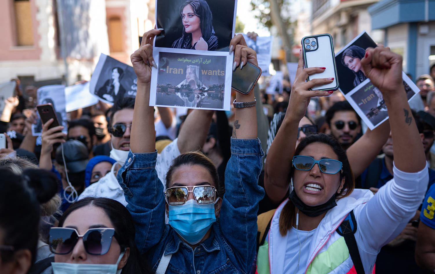 People protest outside the Iranian consulate in Istanbul on September 21, 2022, following the death of a Kurdish woman after her arrest by Iranian morality police in Tehran. Photo: Yasin Akgul/AFP